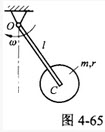 如图4-65所示,忽略质量的细杆OC=ι,其端部固结均质圆盘。杆上点C为圆盘圆心。盘质量为m。半径为r。系统以角速度ω绕轴O转动。系统的动能是()。