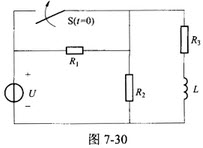 电路如图7-30所示,开关S闭合前电路已达稳态,t=0时S闭合,电路的时间常数等于()。