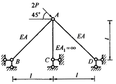 图示桁架中AC为刚性杆,则杆件内力将为:()