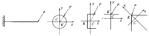 如图所示悬臂梁受力P作用。在图示四种截面的情况下,其最大正应力(绝对值)不能用公式