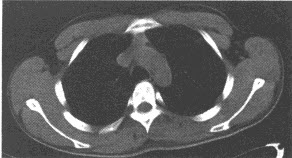 女,43岁,两眼不能完全睁开,全身无力两年余。胸部CT扫描前纵隔内发现肿块,如图,最可能的诊断是()
