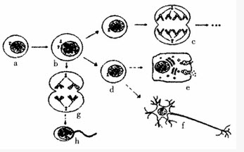 A:导致细胞c、e、f多样性的根本原因是DNA分子的多样性