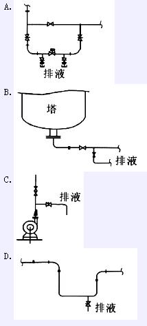 在设计中考虑设备和管道的排液,下列所选择的排液口位置,哪些是不合适的?()