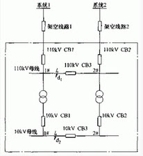 某110/10kV变电所,两台主变,两回110kV电源进线,110kV为内桥接线,10kV为单母线分段接线(分列运行),电气主接线如图所示。110kV桥开关和10kV分段开关均装设备用电源自动投入装置。系统1和系统2均为无穷大系统。架空线路1长70km,架空线路2长30km。