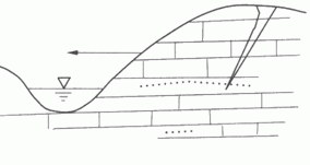 某电站近坝库区边坡(见图),由中厚层白云岩及薄层白云质泥岩、砂质页岩组成,坡角35°,岩层倾角10°,后缘发现有张裂隙。