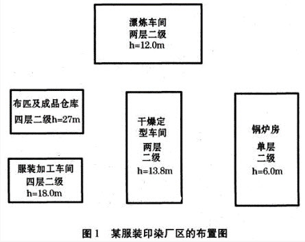 图1为一服装印染厂区的布置图(见下页图),图中给出了各厂房(仓库)的用途、耐火等级、层数和高度,请分析以下问题: