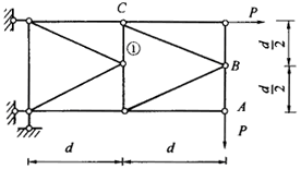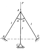 如图所示平面杆系结构,设三杆均为细长压杆,长度均为ι,截面形状和尺寸相同,但三杆约束情况不完全相同,则杆系丧失承载能力的情况应是下述中哪一种?()