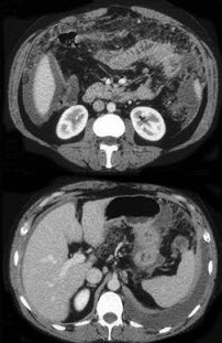 男性,45岁。上腹隐痛6年,为空腹时疼痛,进餐后可缓解,1年前患者行胃肠钡透提示十二指肠球部变形,2天前因大量进食后出现上腹疼痛加重,疼痛可向腰背部放散,查体:上腹部压痛、反跳痛及肌紧张,急检血常规提示:白细胞为11×109/L,中性粒细胞78%。