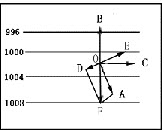 图为北半球摩擦层中水平运动空气质点受力分析示意图,试指出图中水平气压梯度力为()。