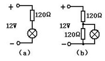 在两个电路中,要在12V的电源上使6V/50mA的灯泡正常发光,应该采用电路()