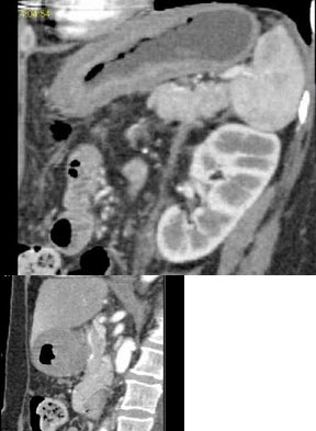 A:空肠粘膜皱襞常显示为羽毛状影像