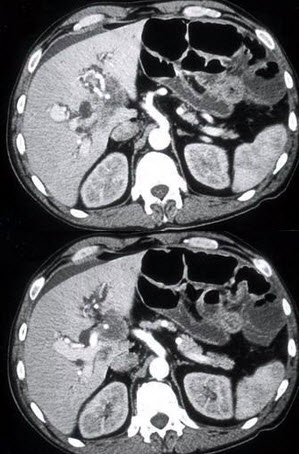 患者溃疡性结肠炎并最近黄疸发作,结合图像,最可能的诊断为( )