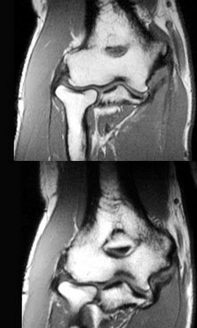 男,28岁,喜爱球类运动,内侧肘部疼痛3个月,结合图像,最可能的诊断是( )