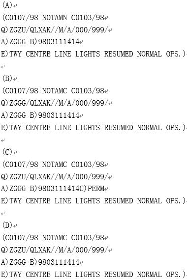 1998年3月11日14时14分,维修科通知,广州机场滑行道中线灯修好。原发航行通告系列号为C0103/98,请发布一个系列号为C0107/98.的航行通告说明情况。()