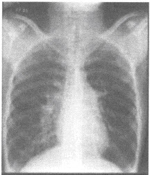 女性,35岁。阵发性劳力性呼吸困难及阵发性夜间呼吸困难。听诊可闻及奔马律。行胸部平片检查如下图: