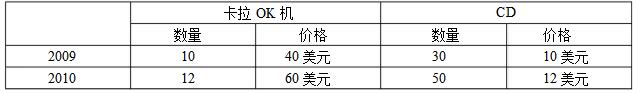 一个十个人的小国把电视上播出的《美国偶像》偶像化。他们都生产并消费卡拉OK机和CD,如下表所示: