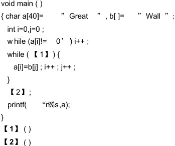 以下程序是将字符串b的内容连接字符数组a的内容后面,形成新字符串a,请填(2)空使程序完整。