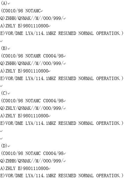 98年1月11日8时,洛阳机场供电恢复,机场VOR/DME(识别标志“LYA”,频率“114.1MHZ”)正常工作,发布C0010/98,参考航行通告系列号C0004/98。()