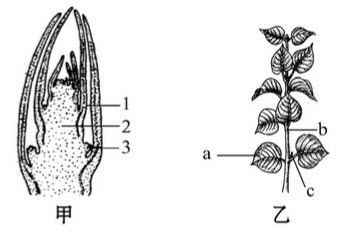 C:图甲中的3发育成图乙中的c