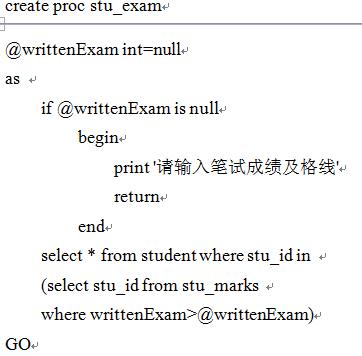A:执行EXEC stu_exam语句,控制台显示所有笔试成绩及格的学生信息记录集