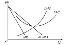 下图某垄断厂商的长期成本曲线、需求曲线和收益曲线。试在图中标出: (1)长期均衡点及相应的均衡价格和均衡产量; (2)长期均衡时代表最优生产规模的SAC曲线和SMC曲线; (3)长期均衡时的利润量。