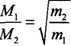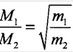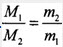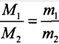 有两种理想气体,第一种的压强记作p1,体积记作V1,温度记作T1,总质量记作m1,摩尔质量记作M1;第二种的压强记作P2,体积记作V2,温度记作T2,总质量记作m2,摩尔质量记作M2。当p1=p2,V1=V2,T1=T2时,则为()。