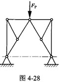 图4-28中,桁架结构形式与载荷FP均已知。结构中杆件内力为零的杆件数为()。
