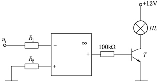 电路如图所示,运算放大器的最大输出电压为±12V,为了使灯HL亮,输入电压u