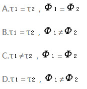 材料不同的两根受扭圆轴,其直径和长度均相同,在扭矩相同的情况下,它们的最大切应力之间和扭转角之间的关系有四种答案:()