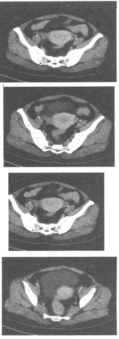 女,65岁,绝经后不规则阴道流血2个月,根据所提供的CT图像,最可能的诊断是()