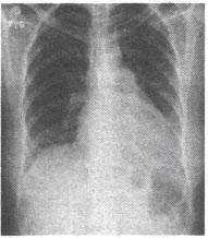 女性,45岁,类风湿性关节炎病史6年,近来感到夜间阵发性呼吸困难,伴有轻度咳嗽,无痰。心脏听诊心尖区S1亢进,胸骨左缘3~4肋间收缩期杂音。行胸部平片检查如下图,应考虑()