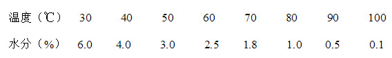 (1)根据下列数据,绘出NSF窑用煤的烘干曲线图。(2)根据烘干曲线,为获得1%~2%残留水分,选定磨的出口温度是多少?