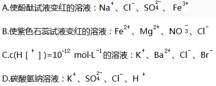 在下列溶液中,各组离子一定能够大量共存的是()。