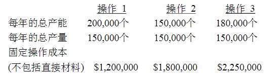 Rosecrans公司生产煤油等,它可以出售它的所有产品。这个产品使用三个操作步骤来生产。每个产品售价$120,原材料(每个产品成本$48)在第一步骤开始时就加入。其它可变成本忽略不计。下面的关于这些操作的实际成本与产能信息。