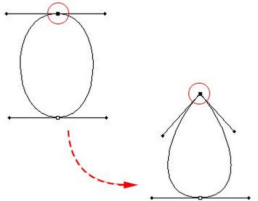 如图所示,下列将平滑曲线点转换成尖角锚点的描述正确的是()。