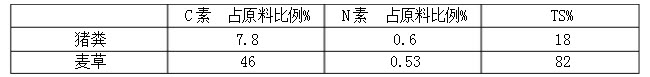 一个6立方米的沼气池按80%的池容填料,要求TS=8%,C/N=25:1,接种物量为原料总量的25%(接种物的TS=10%),该混合的料液容重为1,以猪粪、麦草做原料(成分见下表)不考虑接种的C和N含量,需使用接种物和水分别为多少()