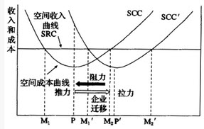 C:企业的空间成本曲线为SCC′时,盈利空间界限为M1′至M2′