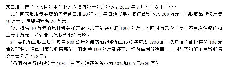 根据上述资料计算下列问题(万元为单位,如有小数保留两位): (1)计算本月甲企业向专卖店销售白酒应缴纳的消费税()万元。 (2)计算乙企业已代收代缴的消费税()万元。 (3)计算本月甲企业销售瓶装药酒应缴纳的消费税()万元。 (4)计算本月甲企业分给职工散装药酒应缴纳的消费税()万元。