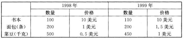 一经济社会生产三种产品:书本、面包和菜豆。它们在1998年和1999年的产量和价格如下表所示,试求: