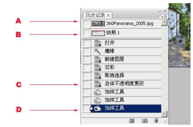 D:打开图像时,Photoshop一不定会建立一个与文件名相同的快照,如图A