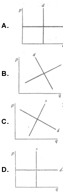 下列四种图示不同状况的土地供求市场中,其中市场的土地稀缺性最高的是()。 图中d为需求曲线、s为供给曲线、q为数量、P为价格