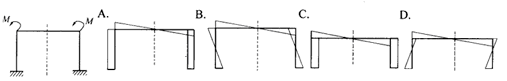 左图所示对称刚架受同向结点力偶作用,弯矩图的正确形状是右侧四个图中的:()