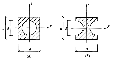 面积相等的两个图形分别如图a、b所示。它们对对称轴y、z轴的惯性矩之间的关系为:()