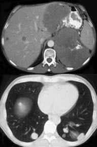 D:肺内多发小结节病灶,考虑为肺转移瘤