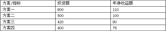 某企业运用偷袭投资回收期法进行技术改造项目决策,该项目有四个互斥方案,各方案的投资额和年净收益额如下表所示:
