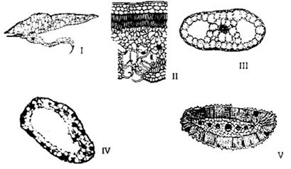 下列叶片的横切面中,哪些适合生活在有水的环境?()