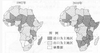 下图示意1992-2010年中国对非洲农产品进出口的变化。读图回答下列各题。