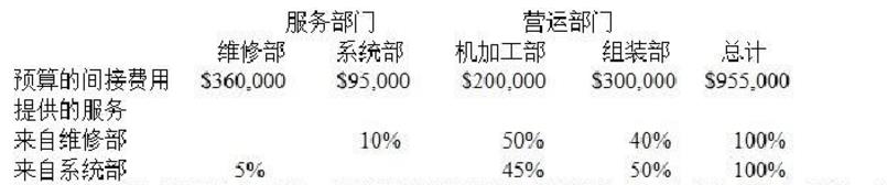 M&P工具公司有三个服务部门来支持生产部门。以下是来年的估计部门间接费用: