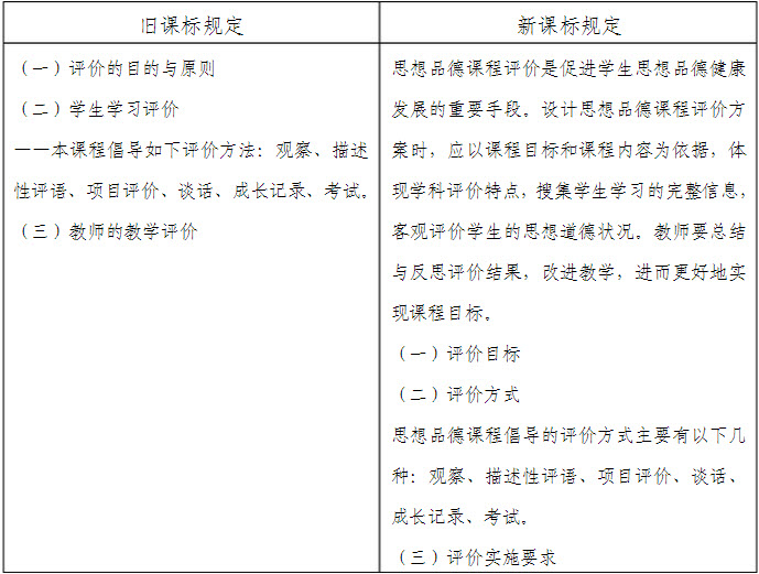 (简答题)(1)上表对照的是新旧课标对哪方面内容的规定? (2)两者相比,有哪些“变”与“不变”? (3)简要说明“评价实施要求”