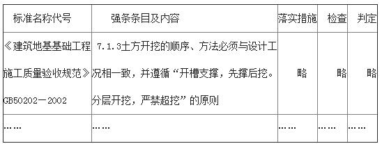 某标准员在该项目施工中,编制了执行工程建设标准强制性条文落实计划表,见表1。